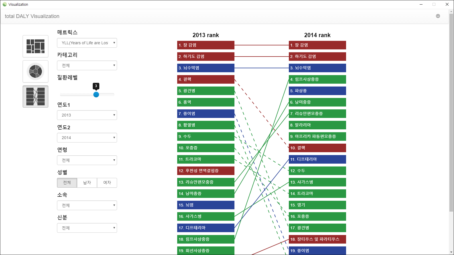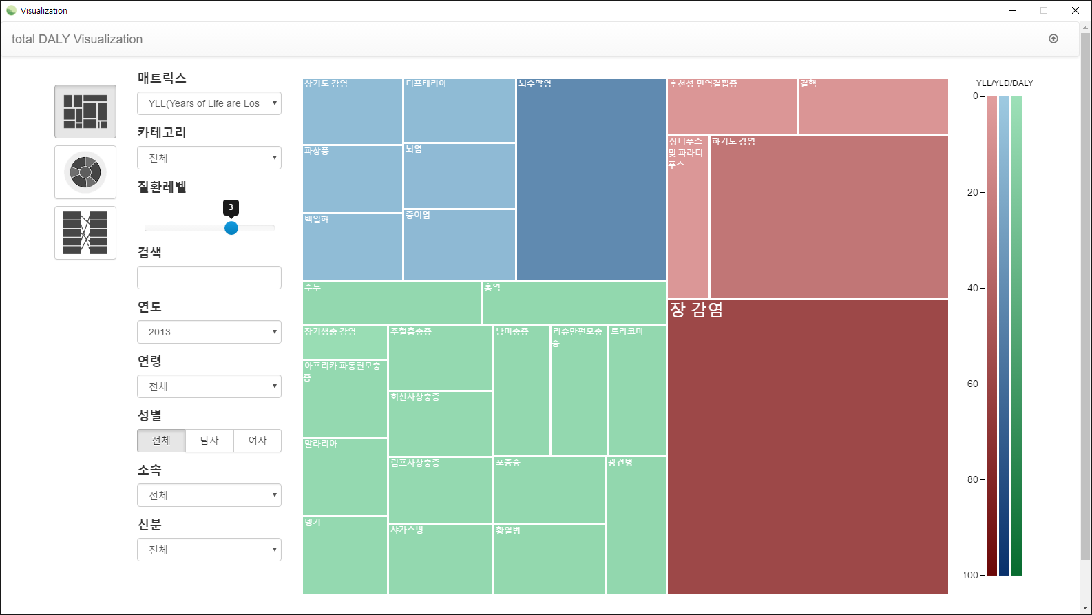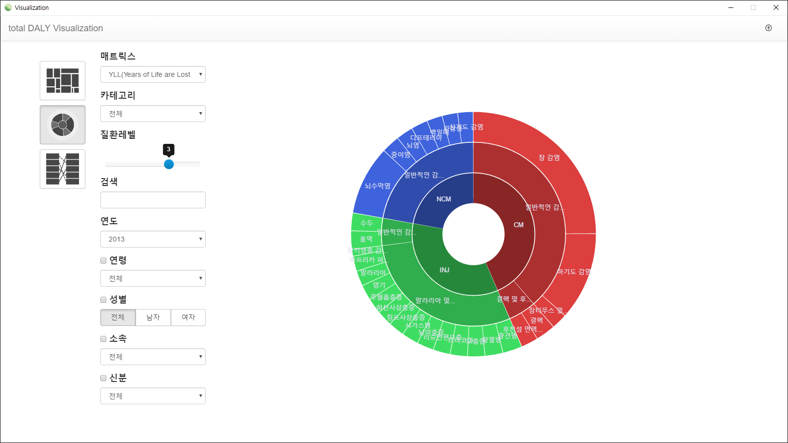 명지대학교 데이터베이스 연구실에서 모 병원의 의뢰로 개발한 군 질병 부담 분석 툴 입니다.